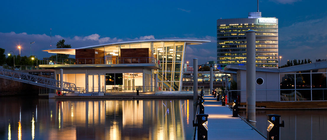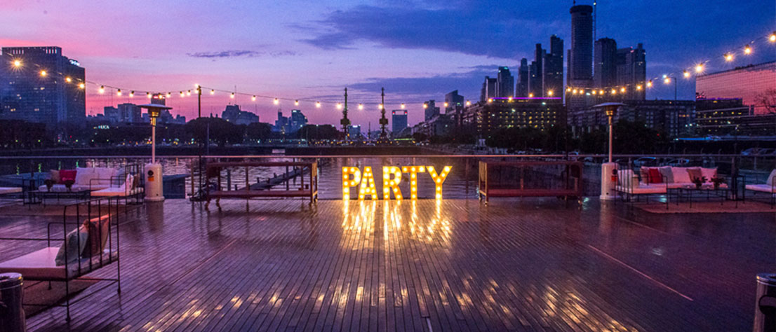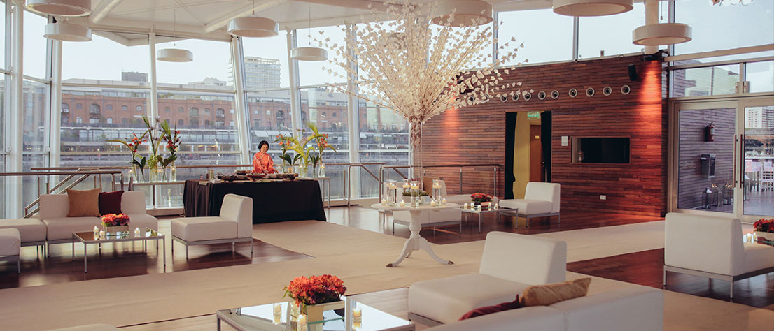 Sobre el Dique 1 de Puerto Madero, su ubicación privilegiada y estructura totalmente vidriada, con el agua y el cielo como marco, lo convierten en una alternativa diferente a todo lo conocido para los eventos sociales y corporativos más exigentes.